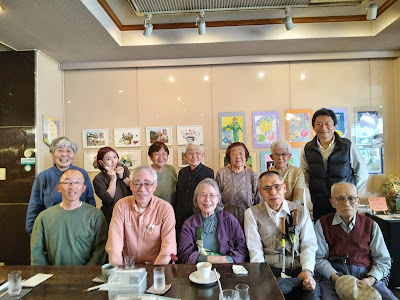 お店の方には予め席の予約をお願いしていたのですが当日は予想以上の参加があり、ネットワークわの会の貸切状態になってしまいました。香り高い珈琲を飲みながら講師の竹田先生からは普段の「絵を描く会」では話されないようなこぼれ話が披露されたりと楽しい会話が続きました。